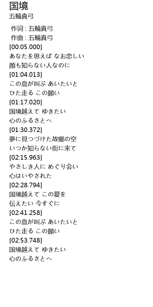 | [02:54.155] | 国境越えて ゆきたい |