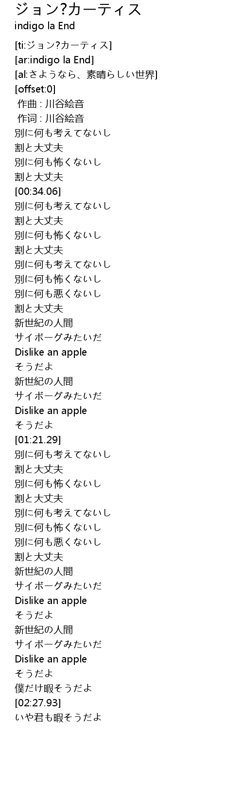 | [00:01.00] | 作词 : 川谷絵音 |