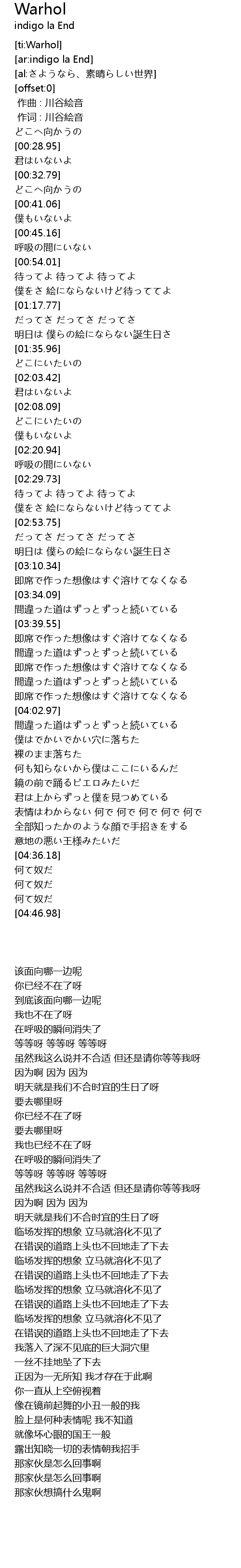 | [00:01.00] | 作词 : 川谷絵音 |