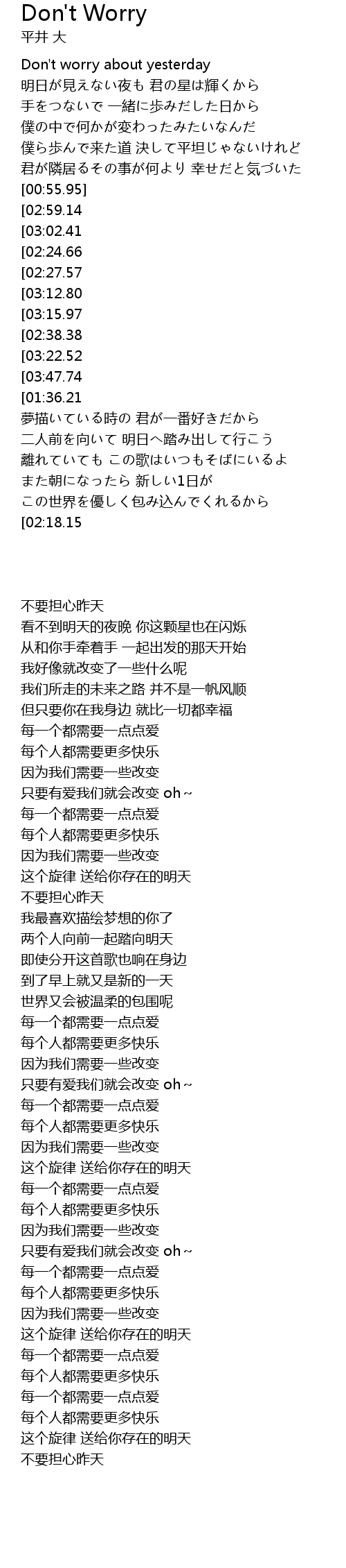 | [00:13.90] | Don' t worry about yesterday |