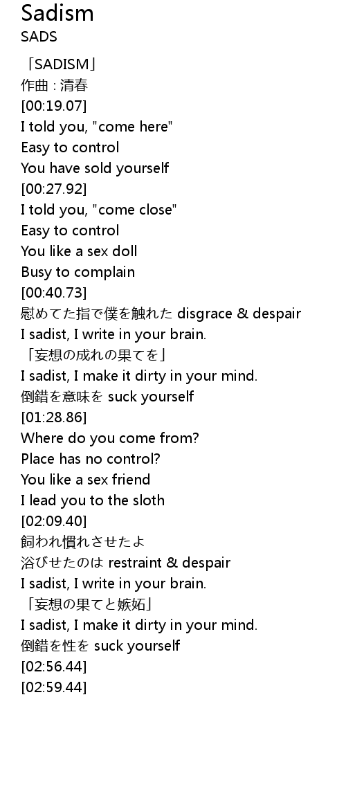 | [00:01.07] | 「SADISM」 |