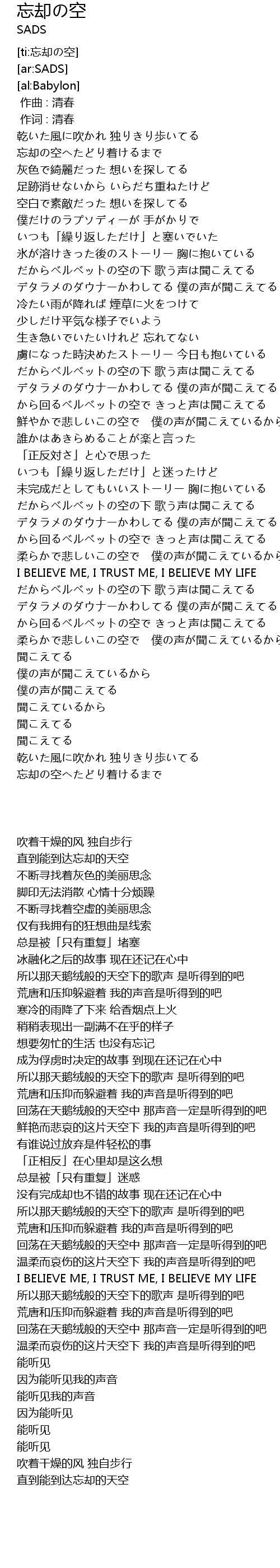| [03:42.17] | I BELIEVE ME, I TRUST ME, I BELIEVE MY LIFE |