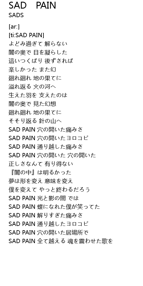 | [04:19.93] | SAD PAIN 蝶になれた僕が笑ってた |