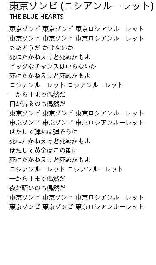 | 東京ゾンビ 東京ゾンビ 東京ロシアンルーレット |