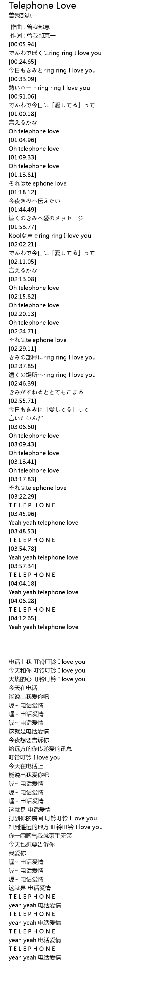 | [00:18.17] | でんわでぼくはring ring I love you |