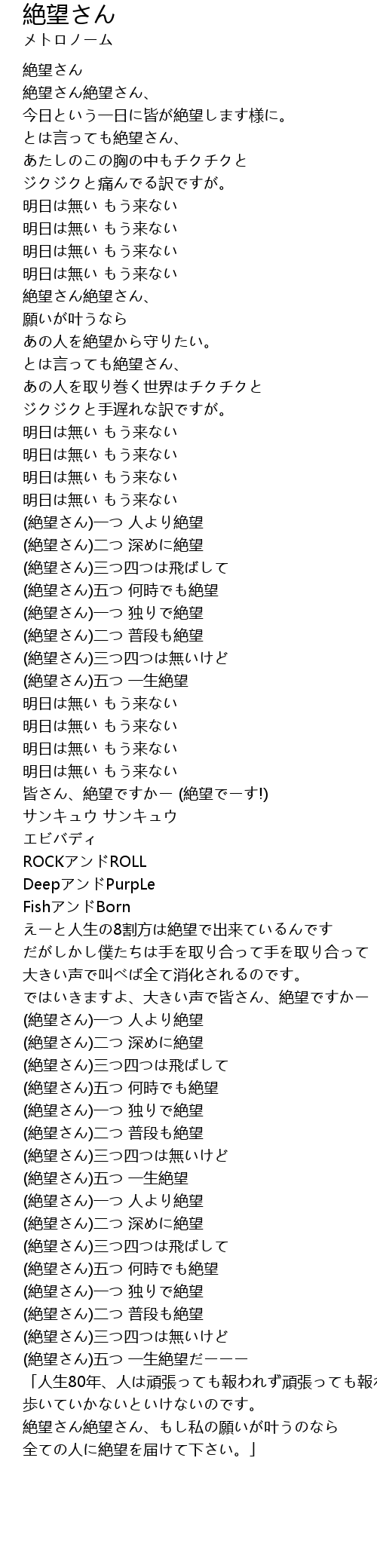 | [02:41.91] | (絶望さん)五つ 何時でも絶望 |