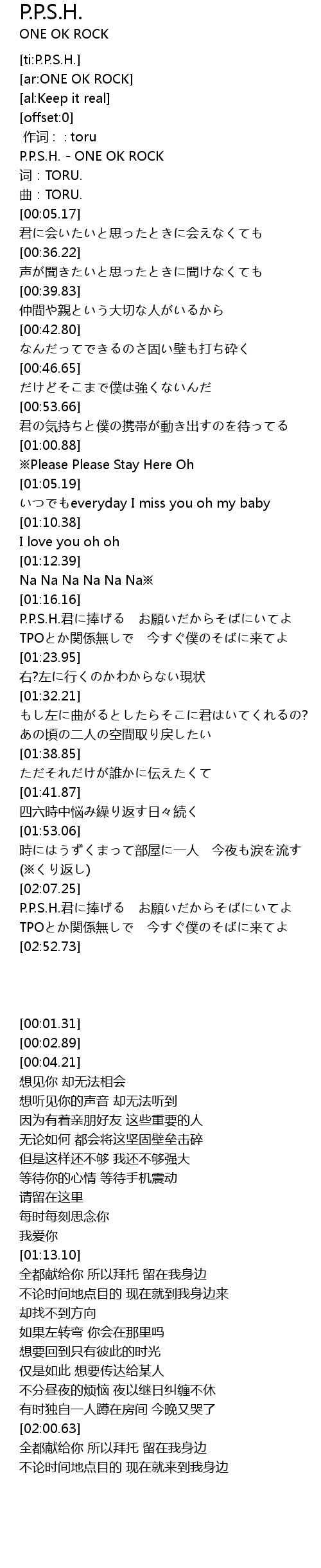 | [00:01.31] | P. P. S. H. ONE OK ROCK |