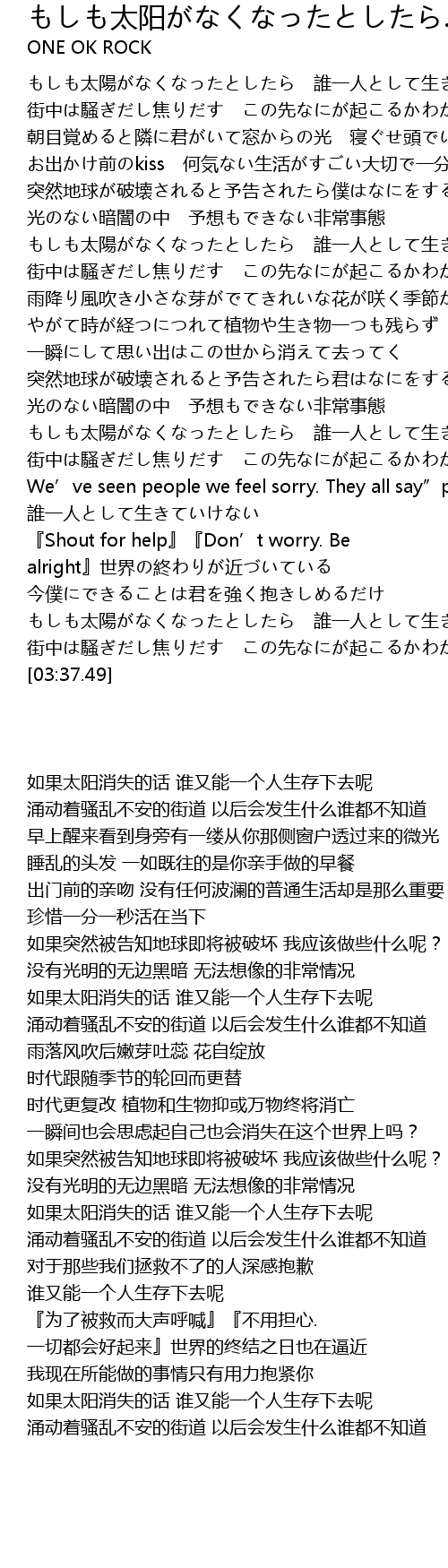 | [03:21.39] | もしも太陽がなくなったとしたら 誰一人として生きていけない |