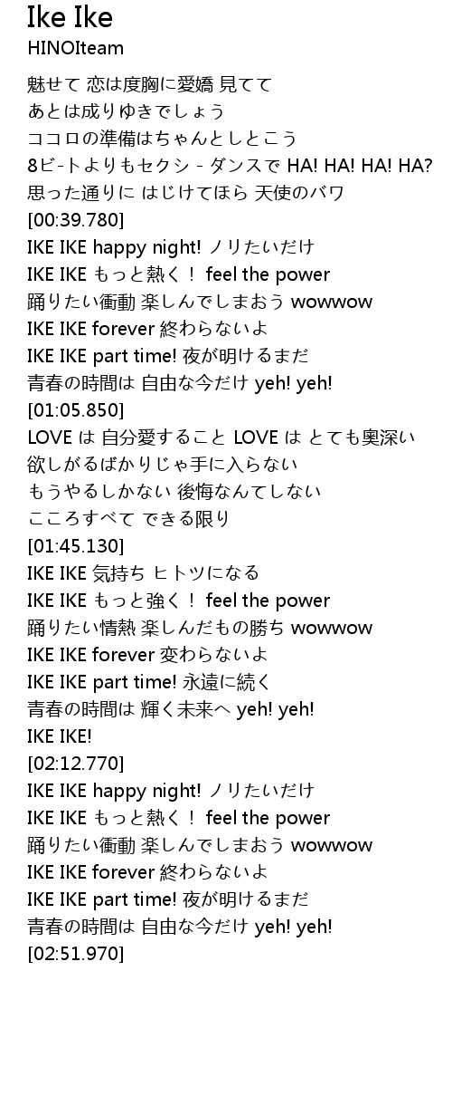 | [00:43.790] | IKE IKE もっと熱く! feel the power |