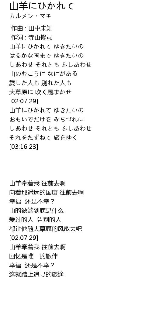 | [02:34.05] | 山羊にひかれて ゆきたいの |