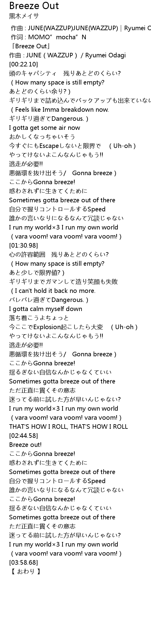 | [00:01.10] | 「Breeze Out」 |