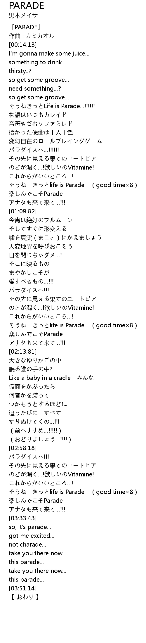 | [03:21.30] | そうね きっとlife is Parade (good time×8) |