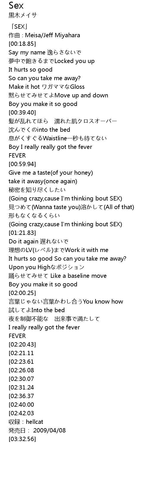 | [00:01.85] | 「SEX」 |