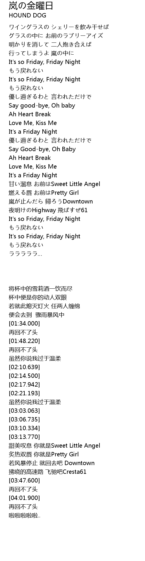 | [03:19.850] | 甘い溜息 お前はSweet Little Angel |