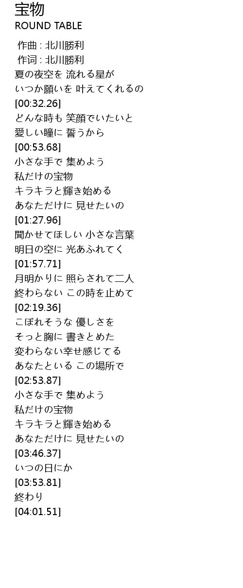 | [00:22.53] | いつか願いを 叶えてくれるの |