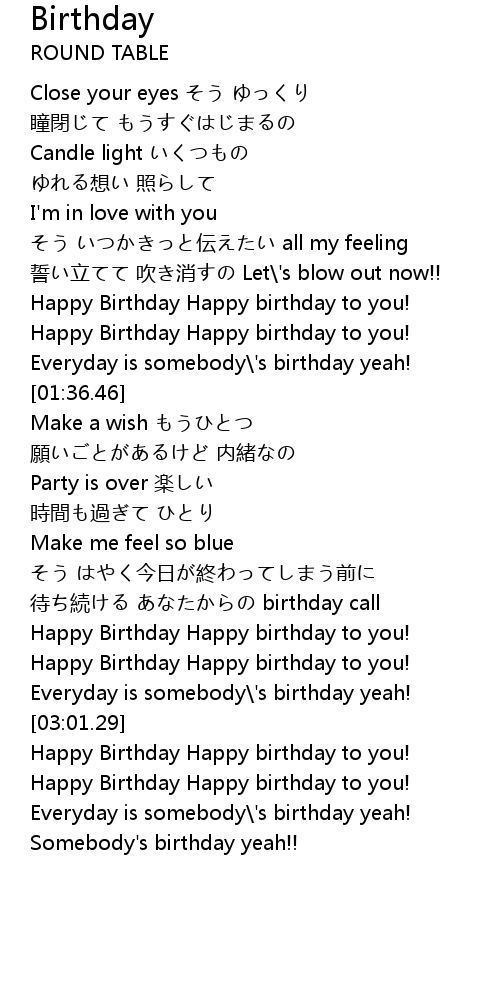 | [02:37.61] | Happy Birthday Happy birthday to you! |