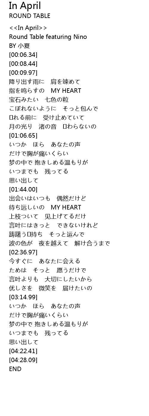 | [00:29.63] | 指を鸣らすの MY HEART |