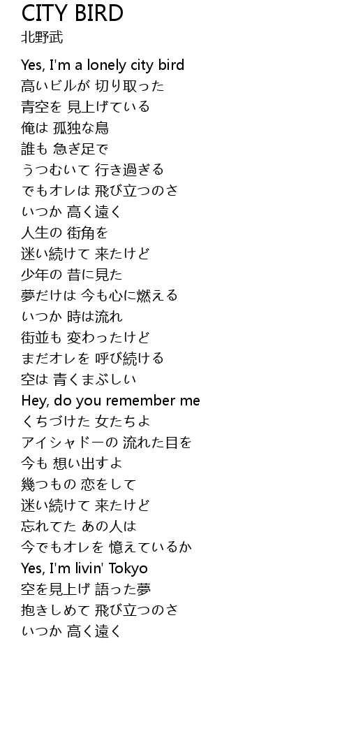 | [00:16.68] | Yes, I'm a lonely city bird |