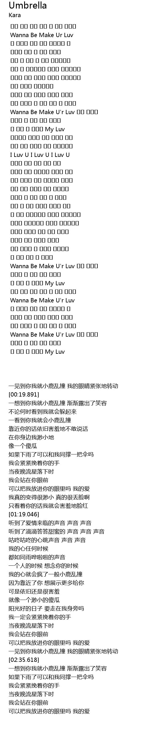 | [02:35.618] | Wanna Be Make U' r Luv |