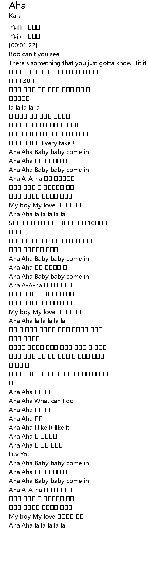 | [01:28.83] | Aha Aha |