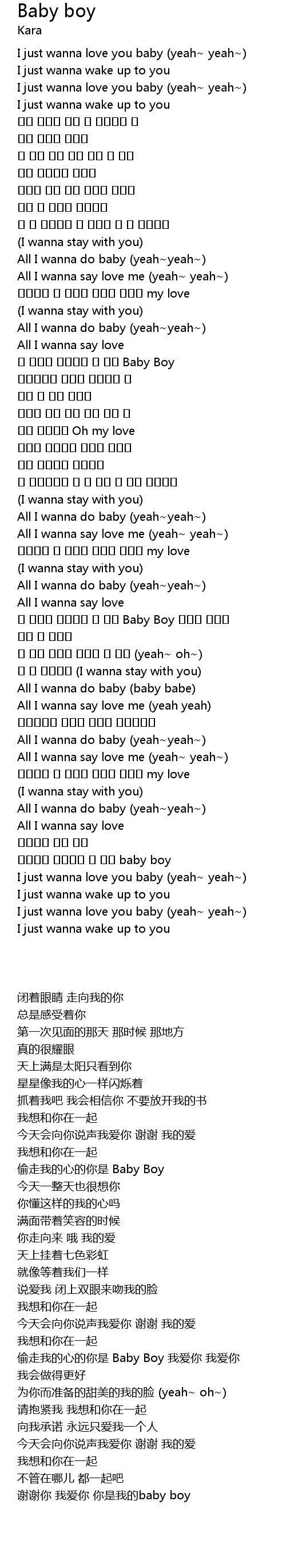 | [02:17.310] | 내 마음을 다가져간 넌 나의 Baby Boy 사랑해 사랑해 나도 더 잘할게 |