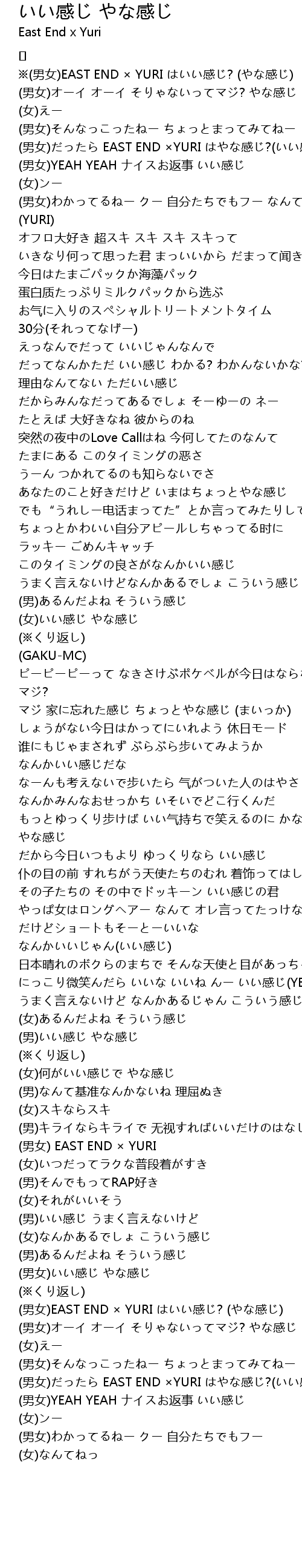 | (男女)EAST END × YURI はいい感じ? (やな感じ) | |