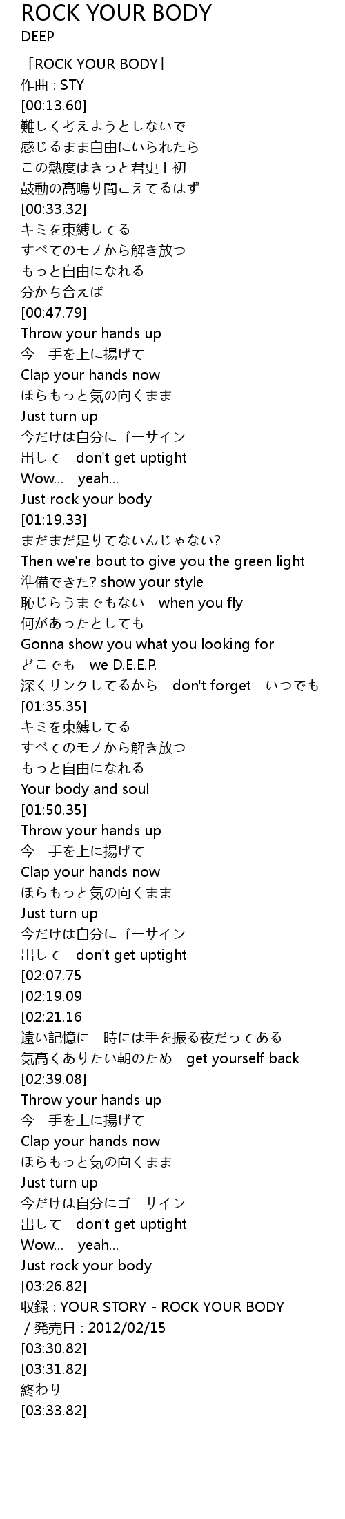 | [03:27.82] | 収録∶YOUR STORY - ROCK YOUR BODY |