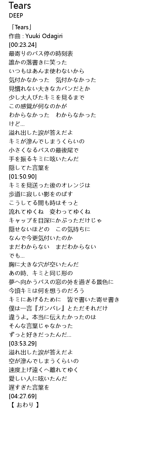| [00:11.24] | zuo qu Yuuki Odagiri |