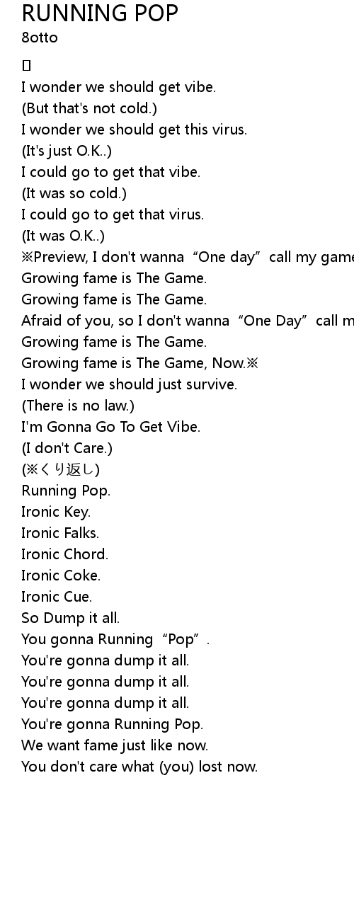 | Afraid of you, so I don't wanna“One Day”call my game. | |