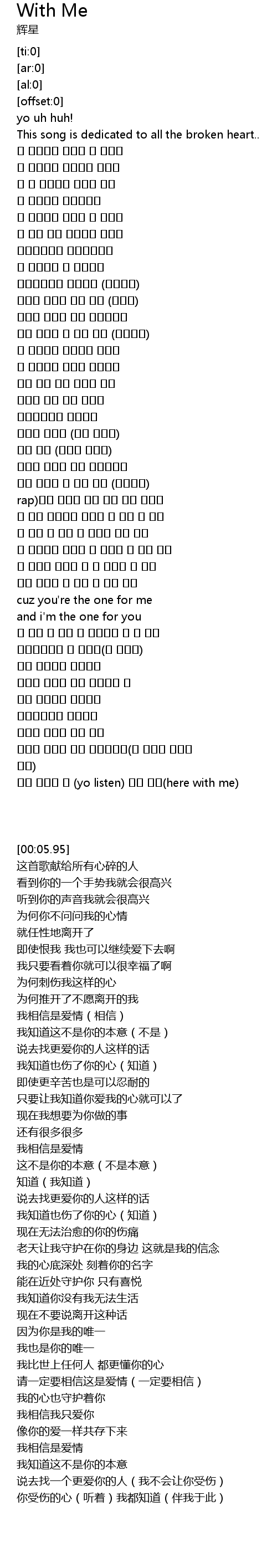 | [03:20.73] | 아픈 니맘도 다 (yo listen) 알수 있어(here with me) |
