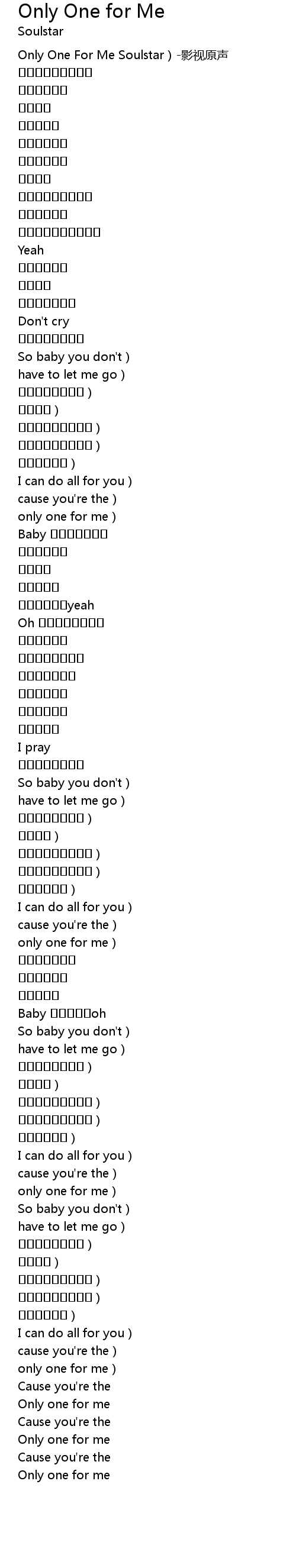 | [00:01.19] | Only One For Me Soulstar ying shi yuan sheng |