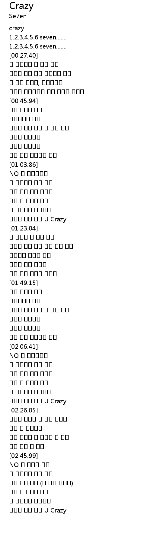 | [02:24.02] | 그녀를 갖지 못해 U Crazy |