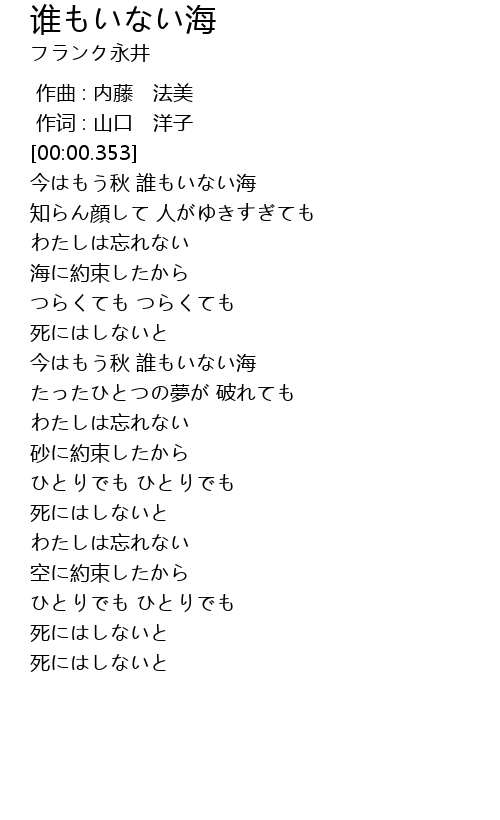 | [01:07.775] | 今はもう秋 誰もいない海 |