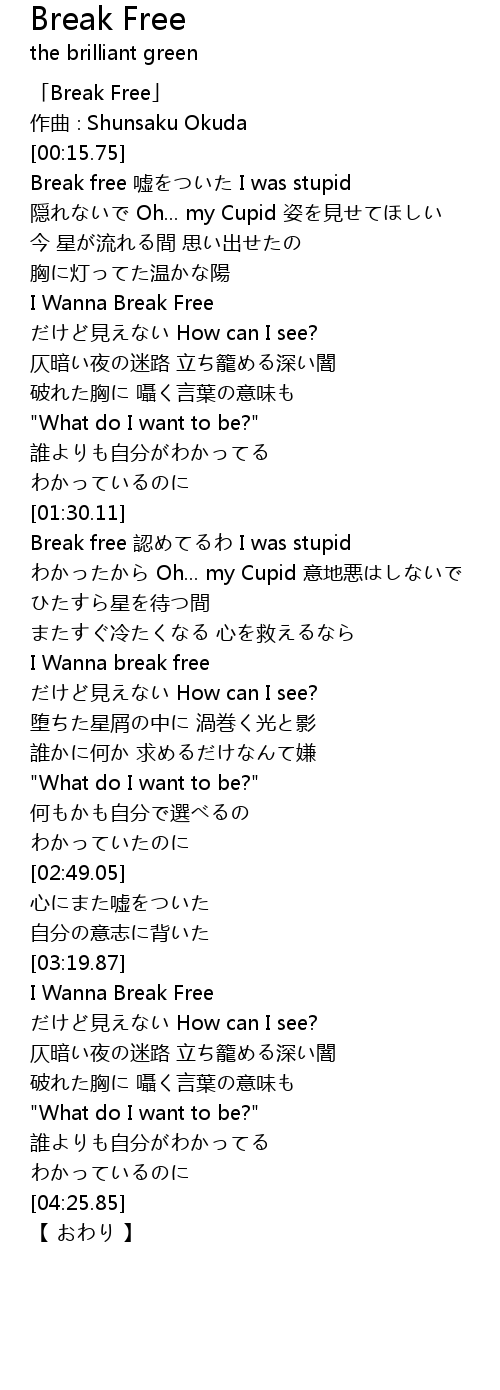 | [00:01.75] | Break Free |