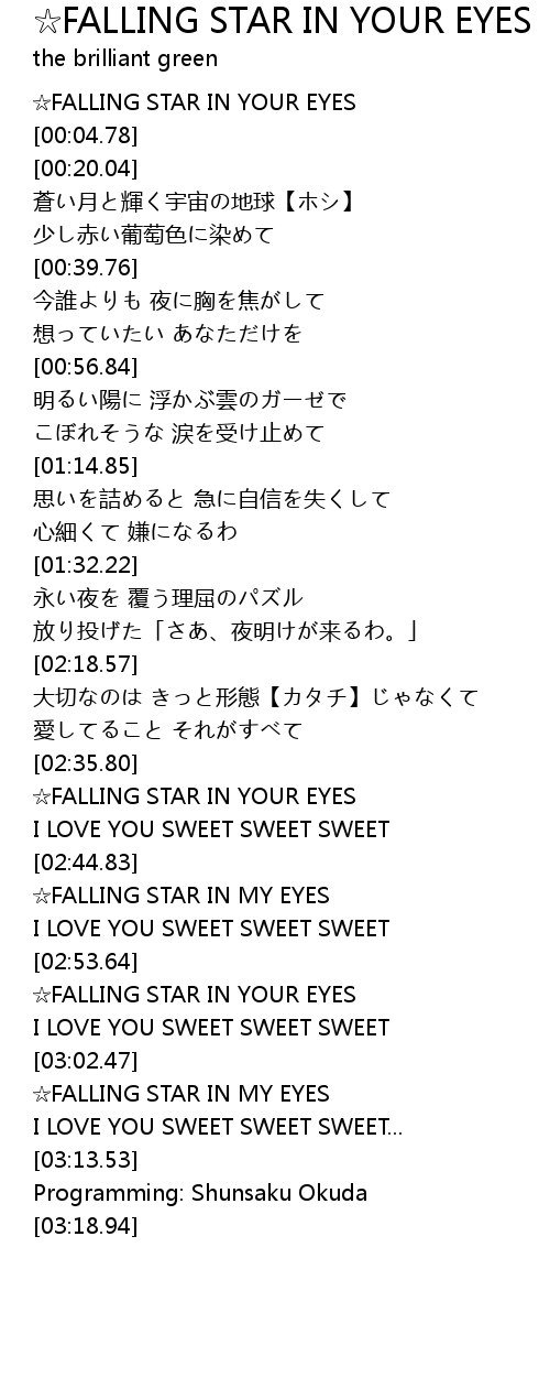 | [02:53.93] | ☆FALLING STAR IN YOUR EYES |