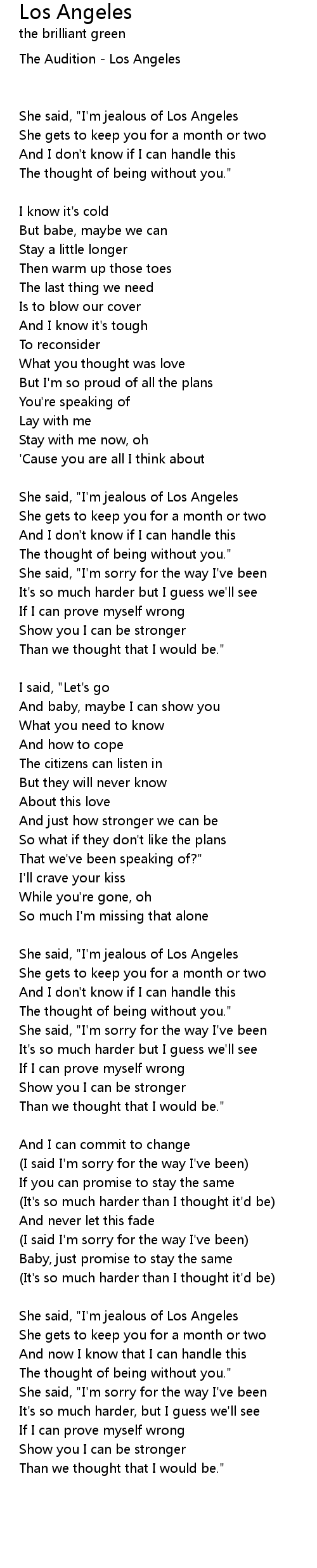 She said, "I'm jealous of Los Angeles |