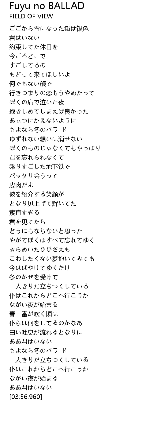 | [03:16.550] | 白い吐息が流れるとなりに |