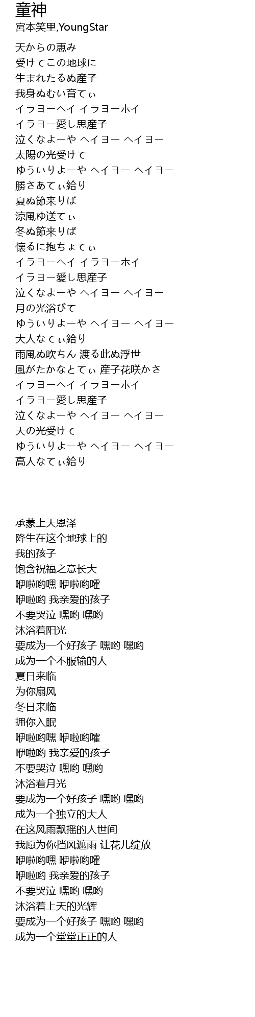 | [00:43.54] | 我身ぬむい育てぃ |
