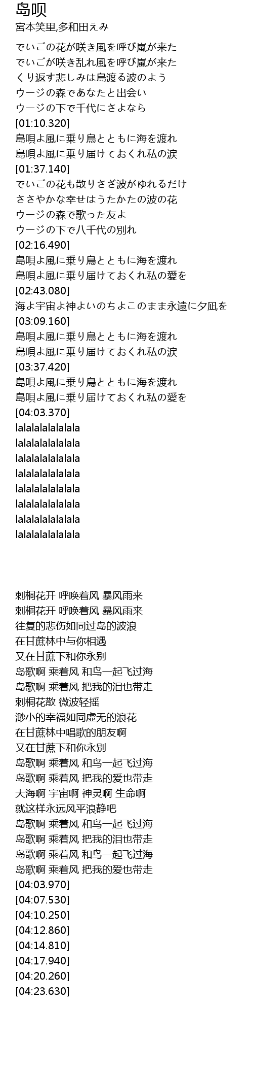 | [00:44.060] | くり返す悲しみは島渡る波のよう |
