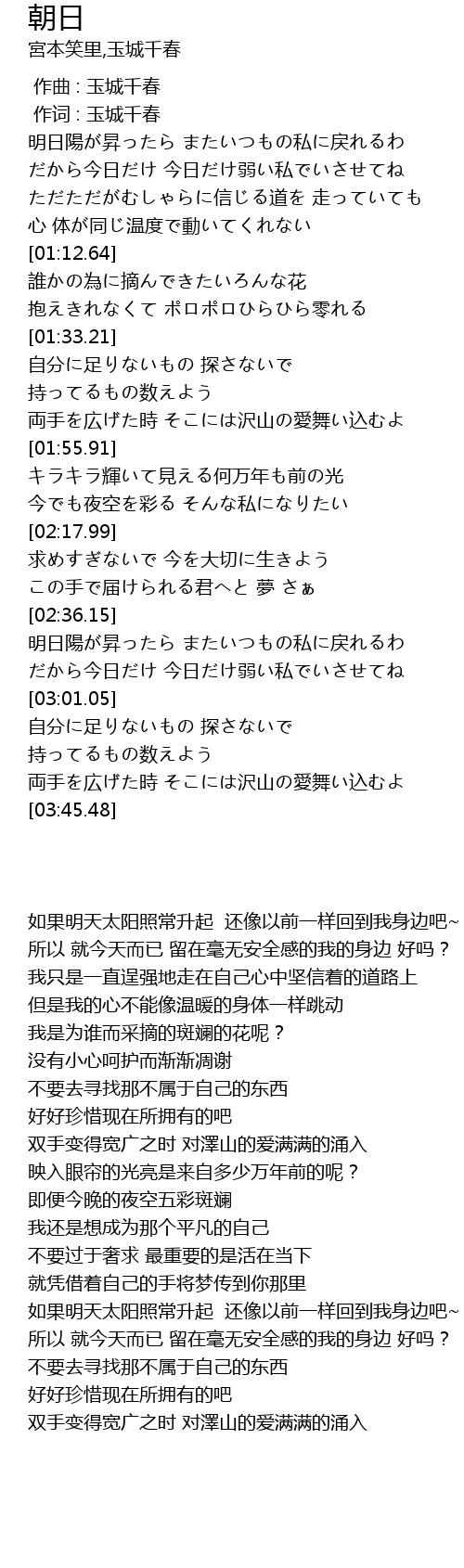 | [02:39.69] | 明日陽が昇ったら またいつもの私に戻れるわ |