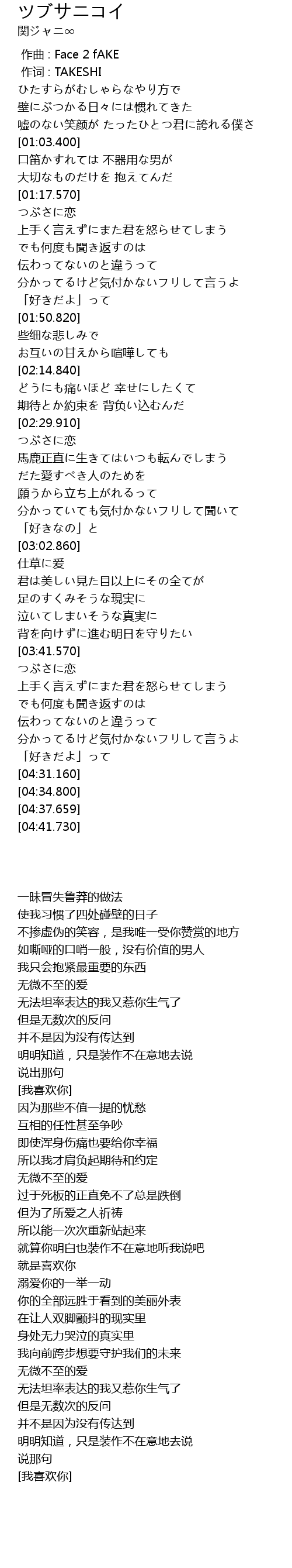 | [03:42.180] | つぶさに恋 |