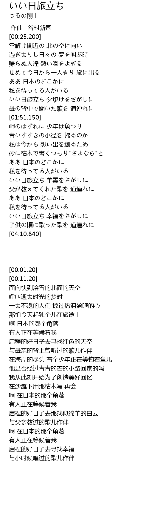 | [03:49.150] | いい日旅立ち 幸福をさがしに |