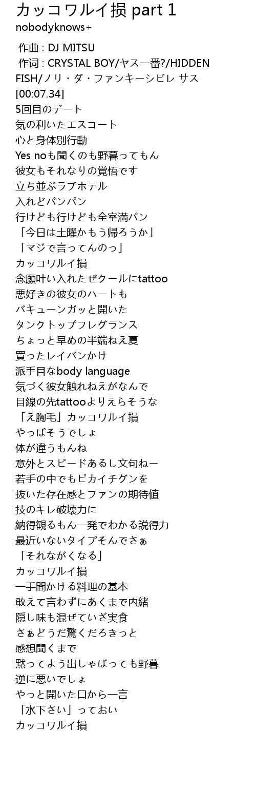 | Song | カッコワルイ损 part 1 |