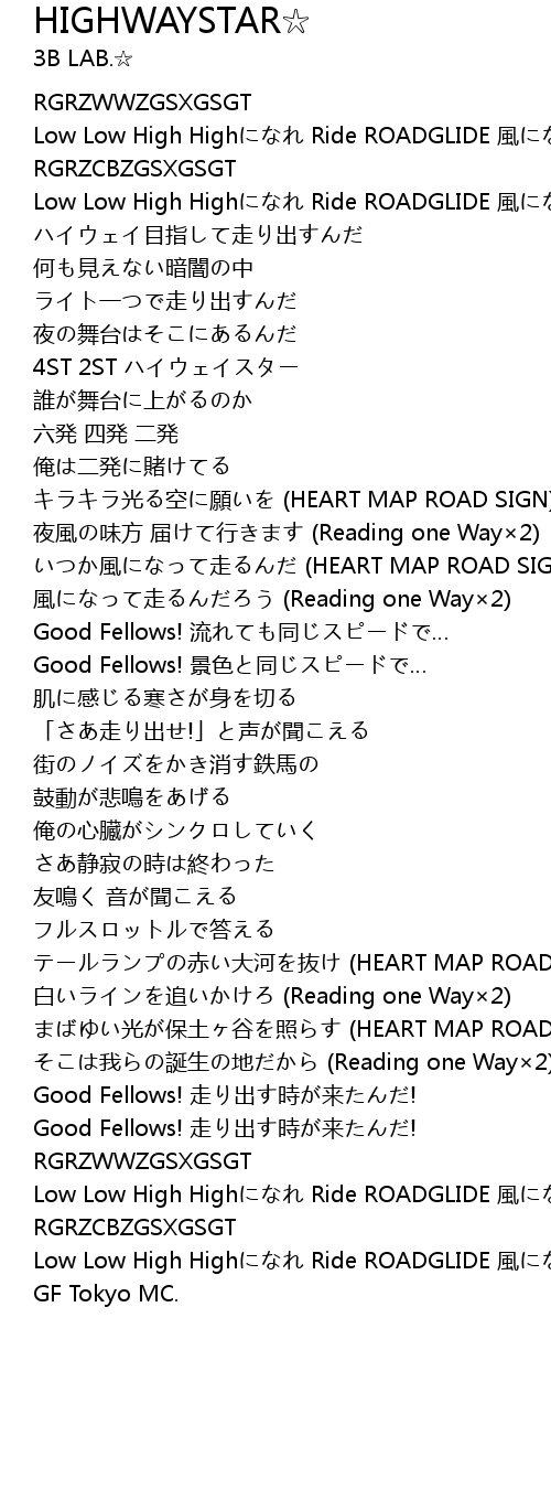 | Song | HIGHWAYSTAR☆ |