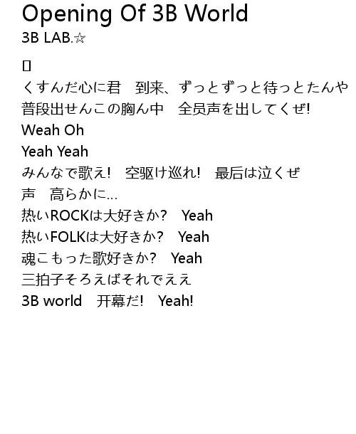 | 3B world 开幕だ! Yeah! |