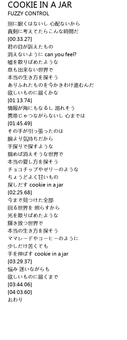 | [03:24.98] | 手を伸ばす cookie in a jar |