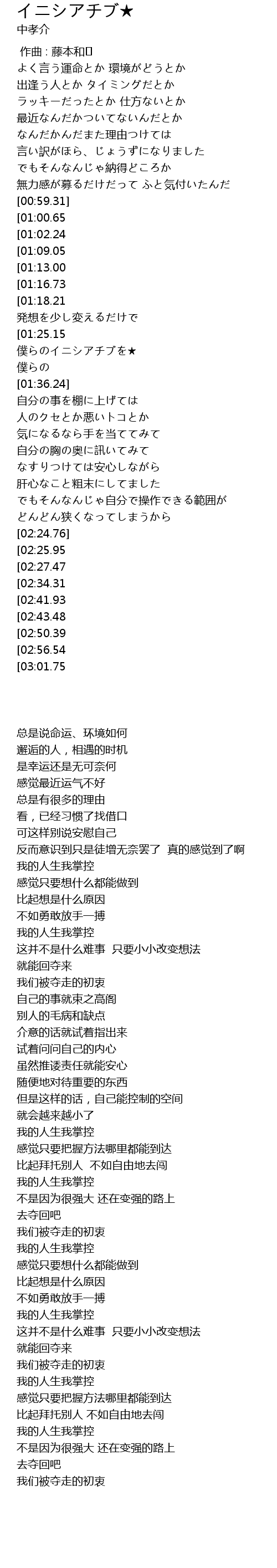 | [04:30.01][02:56.54] | 僕らのイニシアチブを★ |