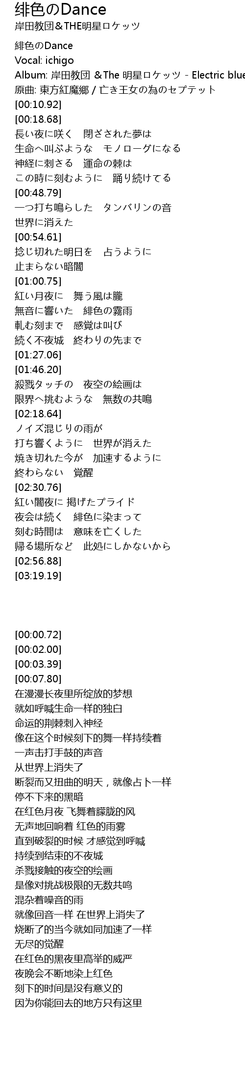 | [00:00.72] | 緋色のDance |
