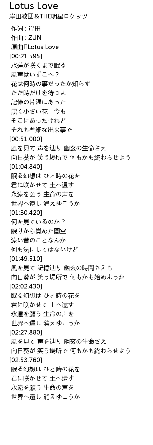 | [00:00.000] | 原曲 Lotus Love |
