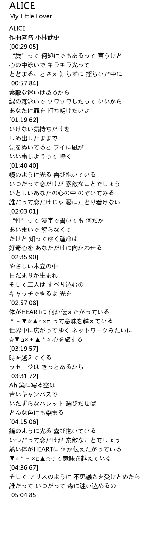 | [04:37.23] | そして アリスのように 不思議さを受けとめたら |